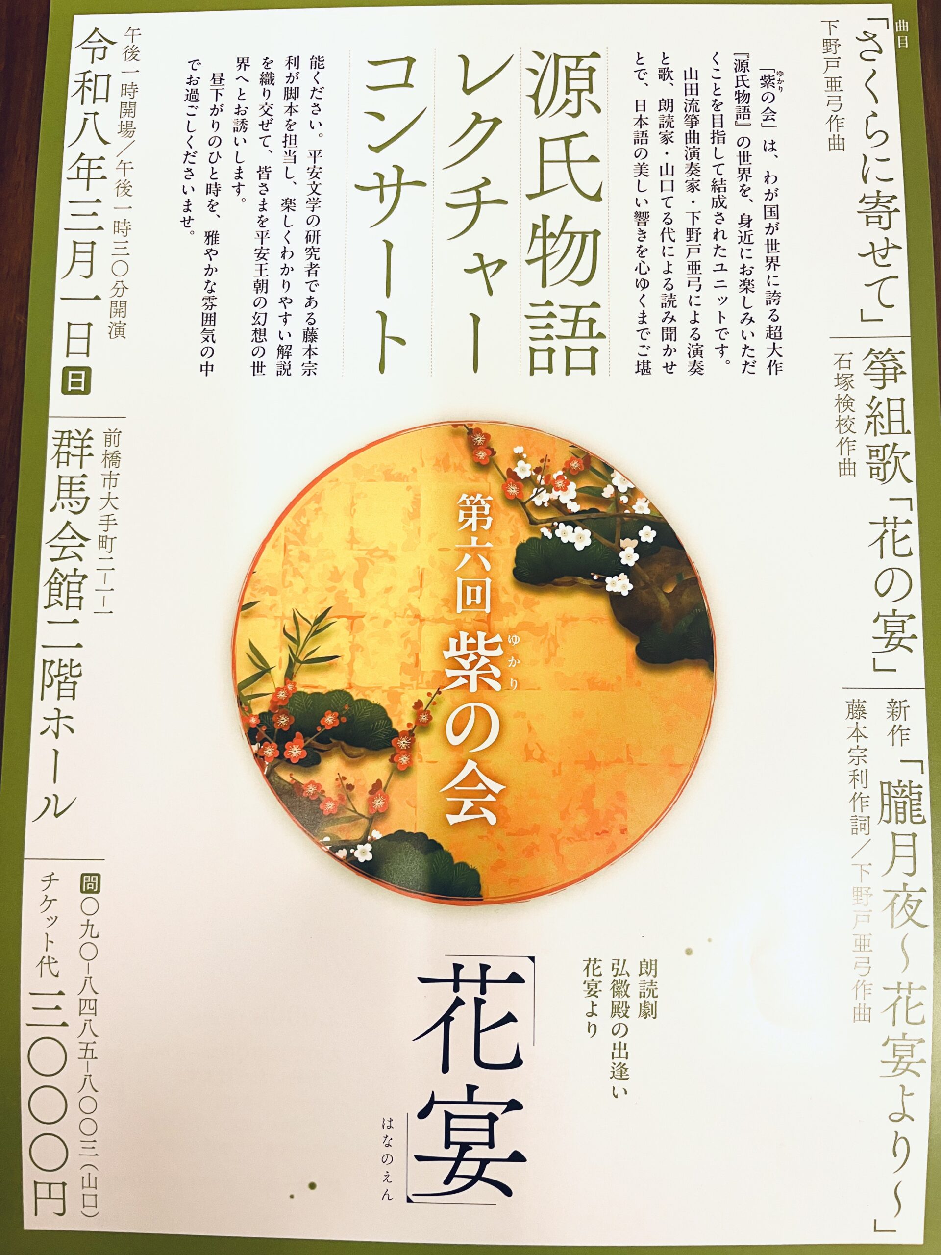 紫の会 源氏物語レクチャーコンサート『花宴」