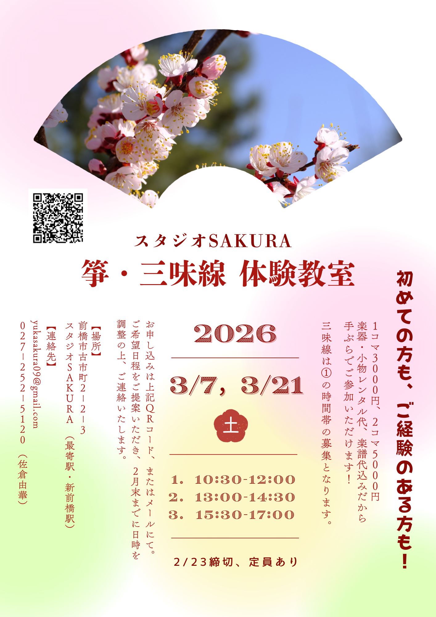 スタジオSAKURA春の体験教室のご案内です。